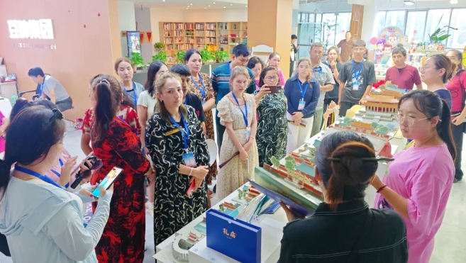 在豆神動漫精心打造的文創(chuàng)展示區(qū),《走近孔子》曲阜孔廟立體書以精巧結(jié)構(gòu)復(fù)原孔廟中軸線建筑,配合多處互動機(jī)關(guān),讓孩子們驚嘆“文物居然能帶回家”;《孔爺爺》六藝盲盒、《小呆雞》文創(chuàng)文具等,把國學(xué)知識融入日常器物,讓文化變得可觸、可感、可用。